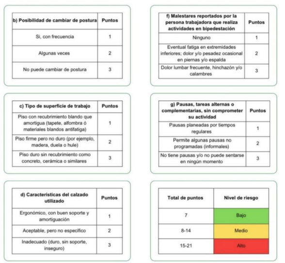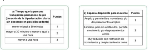 que labora en bipedestación, mediante el siguiente procedimiento de puntaje de las